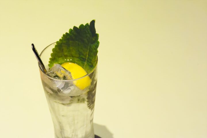青々とした大きなえごまの葉が目を引くカクテルが「エゴマカクテル」。レモンサワーの爽やかさにハーブとしてのえごまの風味がアクセントなり、さらに爽快で一癖ある味わいになる一杯です。期間限定の一品です。
