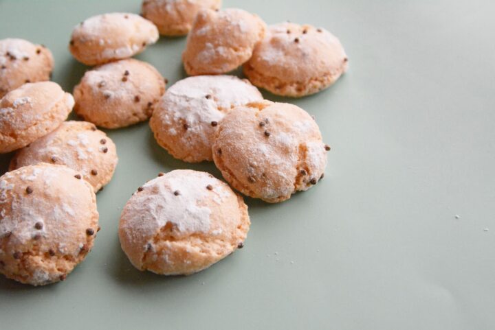 アマレッティは、マカロンの原型と言われているコロンとした小さい焼き菓子。えごまの実のプチプチ食感だけでなく、香ばしい味も際立っています。